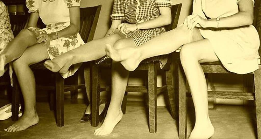 До появления колготок представительницы прекрасного пола носили чулки. Следует заметить, что у них присутствовал существенный недостаток─ это не самый удобный предмет гардероба. Чулки держались на ноге с помощью подвязок, которые крепились к поясу. Хоть это и выглядело привлекательно, но было некомфортно для дам. К тому же, в прохладную погоду надо было надевать утепленный вариант. А подобное изделие сильно выделялось под одеждой.