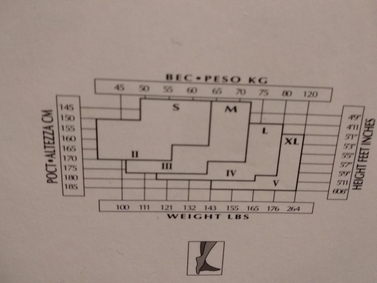 росту и весу. На каждой упаковке чулок представлена таблица, где вертикальная