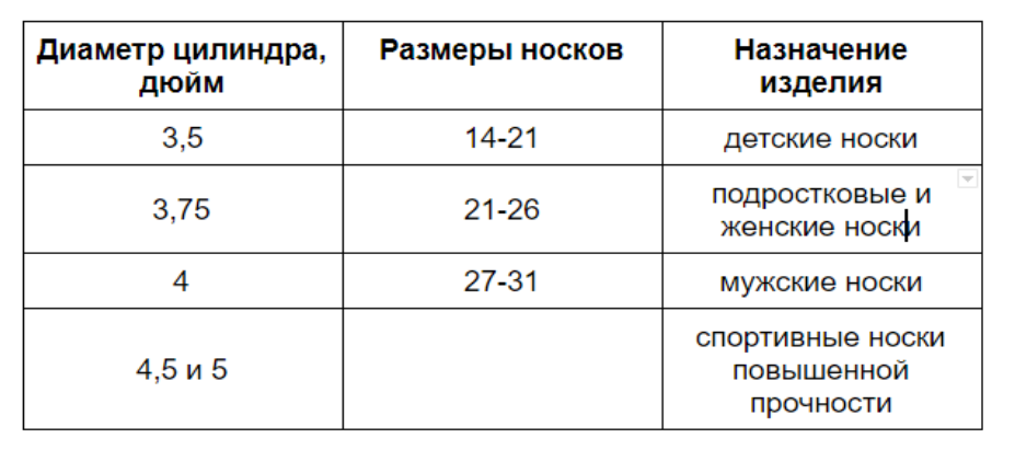 Например, для мужских моделей носков подойдут диаметры 3,5-4 дюйма. Для женской продукции необходимо обзавестись меньшими диаметрами.