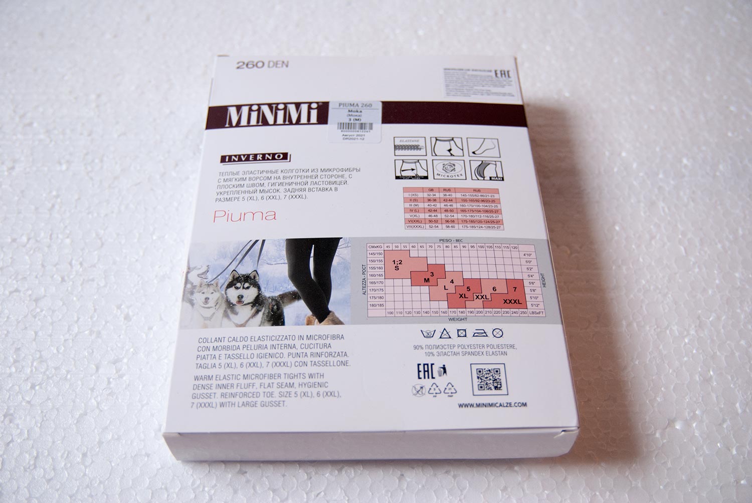 Итак, Piuma 260 — это колготки из зимней серии; подсказка на упаковке в этот раз (что не всегда свойственно MiNiMi) не вводит в заблуждение, а действительно ориентирует — эта модель предназначена для морозов, длительных прогулок на свежем воздухе или занятий спортом. Например, в этих термоколготках (а они таки термо) можно бегать зимой.