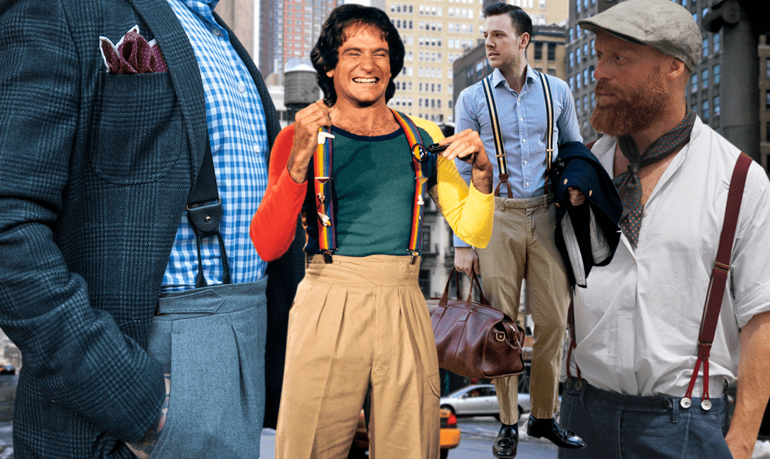 В стародавние времена подтяжки считались исключительно предметом нижнего белья, а нижнее бельё демонстрировать как-то неприлично. Достаточно вспомнить фильмы про конец 19-го, начало 20-го веков: все работяги были в подтяжках и кепках. Так вот, в связи с этим считалось крайне вульгарным выставлять их напоказ. Но сейчас щеголять с неприкрытыми подтяжками считается совершенно нормальным, и всё благодаря американцам. Дело в том, что американский деловой костюм подразумевал под собой ношение жилета, который, собственно, служил в качестве прикрытия «нижнего белья», но где-то в конце 40-х – начале 50-х популярность на костюмы-тройки резко упала, жилет покинул гардероб, и никто не заметил момента, когда носить подтяжки открыто стало чем-то самим собой разумеющимся.