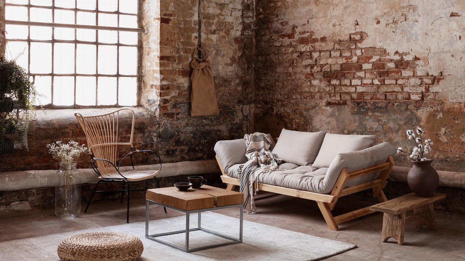 Ключевые элементы. В таком интерьере обычно сразу бросаются в глаза стены ― это может быть небрежная кладка из необработанного кирпича, фактурная штукатурка. Иногда дизайнер решает оставить стены без отделки, местами осыпавшимися от старости. В оформлении сочетаются светлые тона ― белый, беж ― с серым, чёрным цветом.