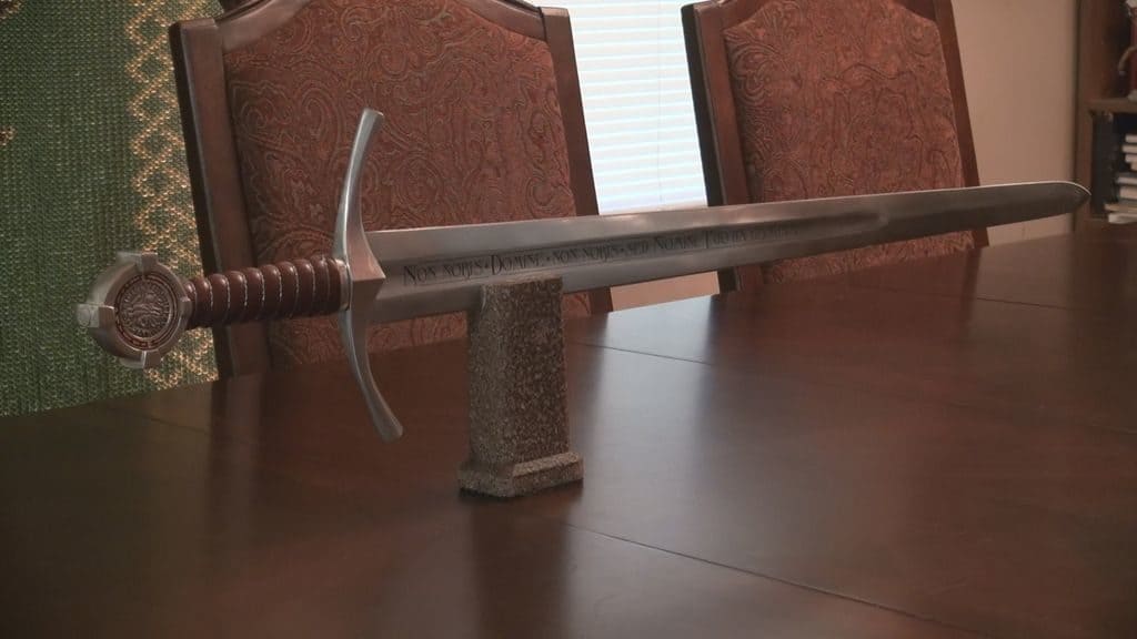 Меч с крестообразной рукояткой – главное оружие средневековых воинов, выступавшим своего рода символом рыцарства. Он превосходил другие виды холодного оружия по удобству и маневренности. В опытных руках метровый меч, весивший порядка 2-х кг, можно было задействовать с невероятной эффективностью. Остроконечный меч легко проникал сквозь броню и отсекал конечности.