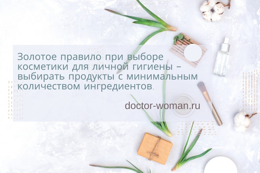 Золотое правило при выборе косметики для личной гигиены – выбирать продукты с минимальным количеством ингредиентов. Желательно перейти к использованию натуральной косметики, питающей, очищающей и улучшающей внешний вид кожи и волос с помощью натуральных ингредиентов.