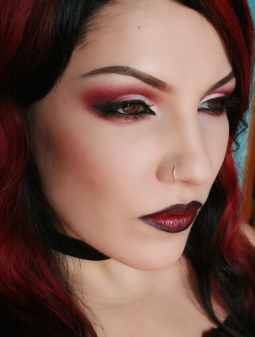 Красно-черный макияж подойдёт для создания образа роковой красавицы или дерзкой неформалки.