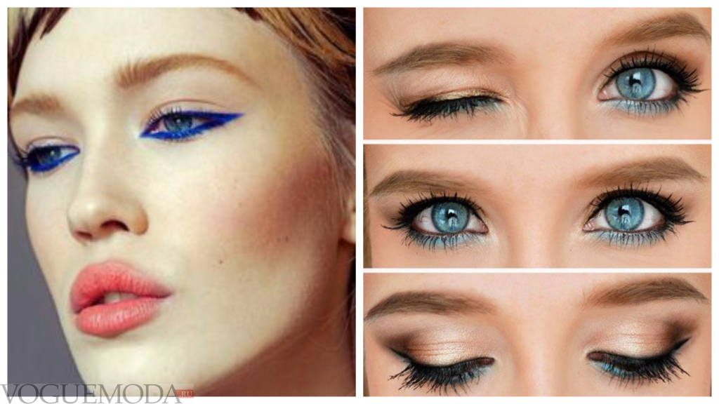 Косметичка голубоглазой красавицы точно была бы не полной без лайнера или карандаша. Однако, черный цвет без растушевки не подойдет. Его лучшей альтернативой будет коричневый, сливовый, серый или темно-синий тон. Эти оттенки выглядят мягче и естественней, а значит не подавляют нежный цвет глаз.