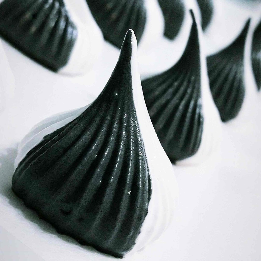 Самое главное – добавлять уголь в самом конце, когда меренга уже готова. Иначе она осядет