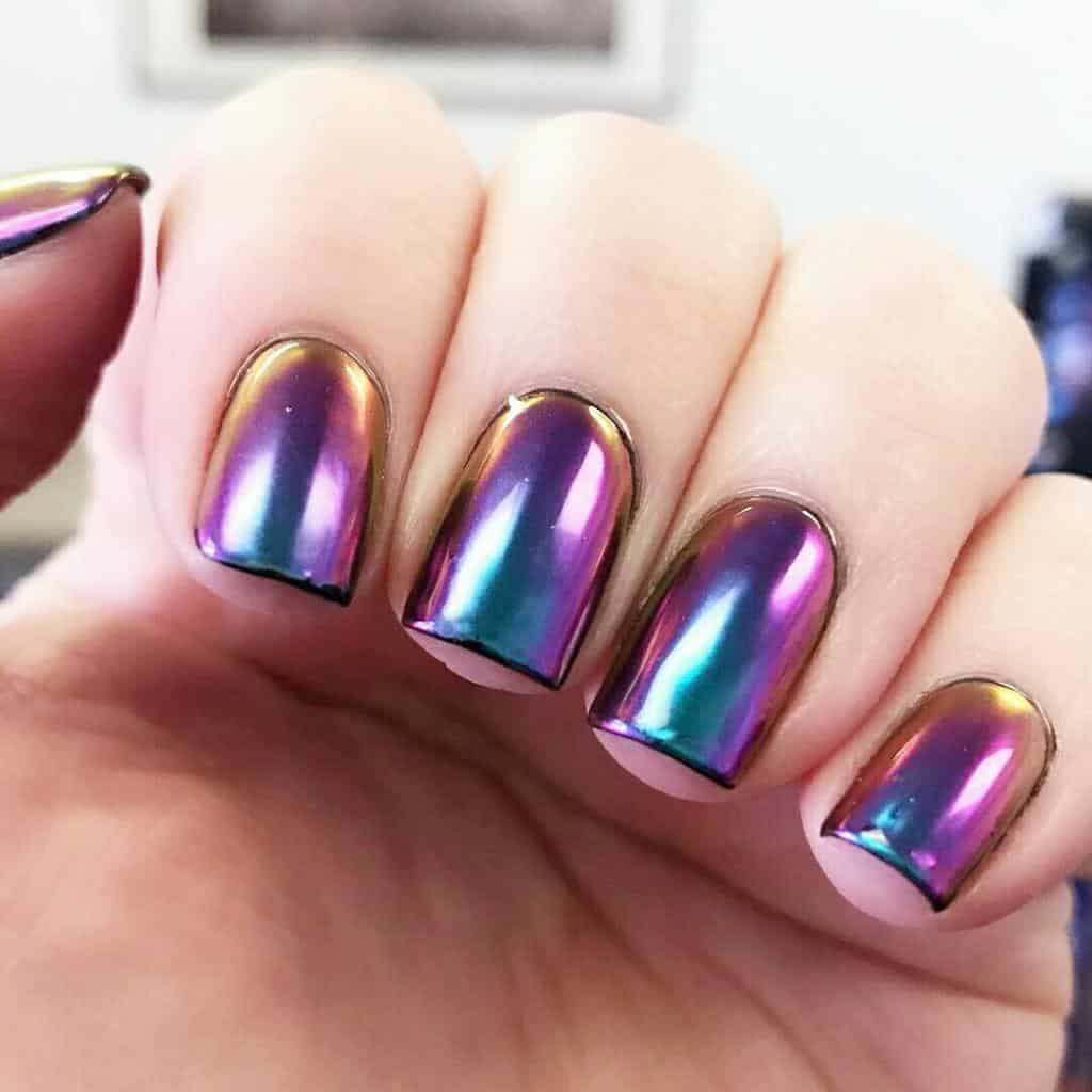 - Сверкающий галактический маникюр с потрясающими хамелеоновыми переливами готов!