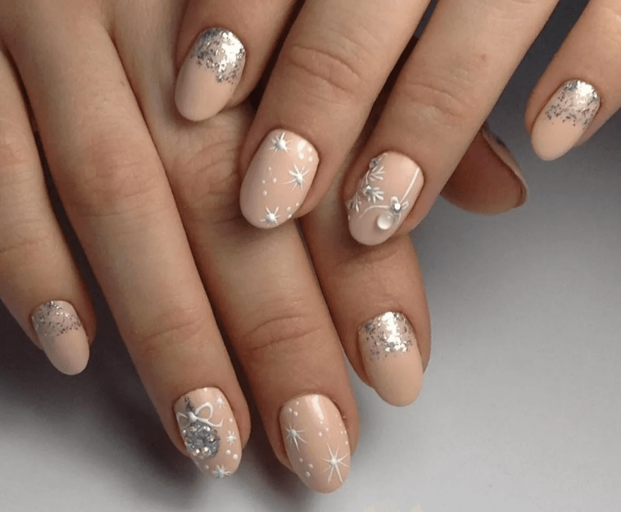Для каждой женщины комфортна своя форма ногтей. Но далеко не каждый рисунок универсален. Ниже на фото показан нежный новогодний маникюр, который подойдет на миндаль, но, например, на квадрате его в таком виде воплотить не удастся.