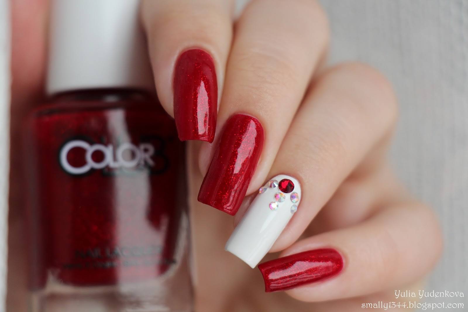 Притянуть к себе внимание, выделиться можно при помощи яркого монохромного маникюра, украшенного стразами