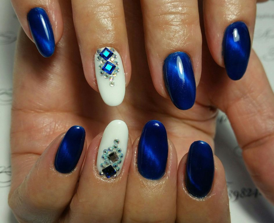 Маникюр «Кошачий глаз» со стразами