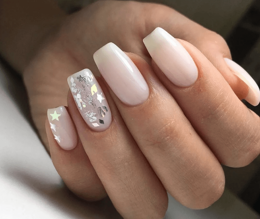 Главная особенность нежного дизайна маникюра — умеренное использование украшений в виде страз. В противном случае ваш маникюр будет выглядеть неуклюже, ведь стразы — это не просто камни, визуально похожие на бриллианты с разной гранью. В эту категорию украшений входят бульоны, полусферы, подвески, бусины, стеклянные камешки и многие другие декоративные варианты различных форм и размеров, которые в чрезмерном изобилии могут создавать отталкивающий эффект.