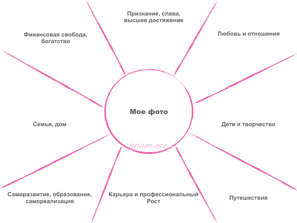 Доска по сути напоминает карту и коллаж, она необходима для того, чтобы вы научились правильно и коротко формулировать цели, создавать их образы.